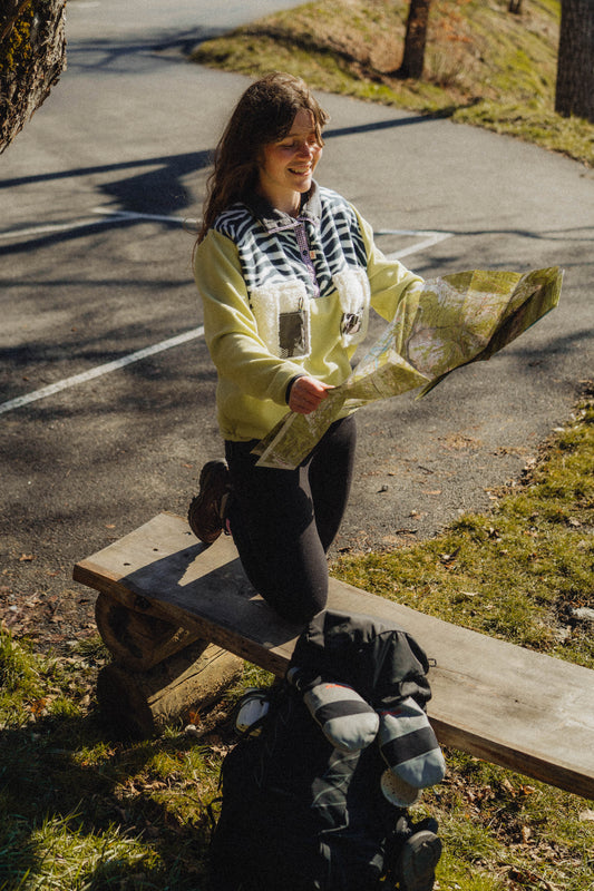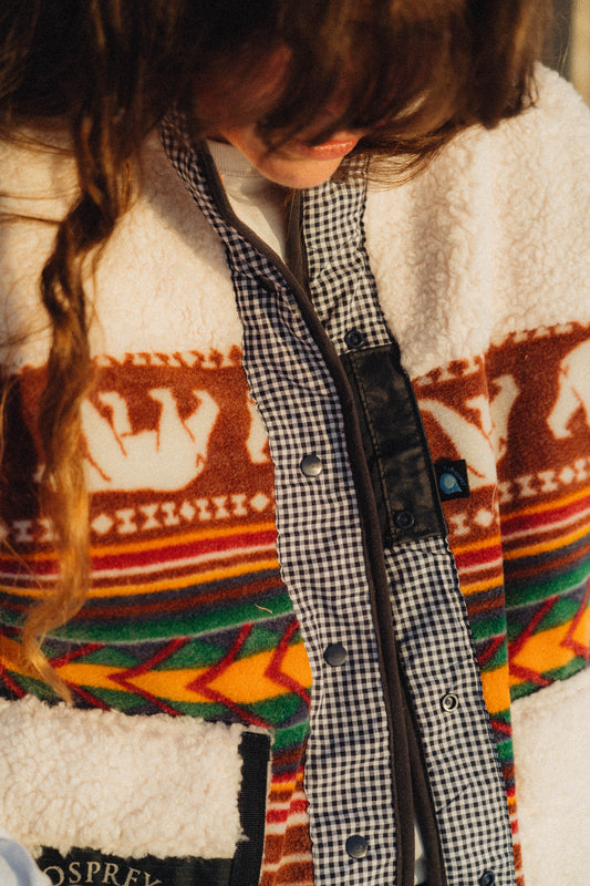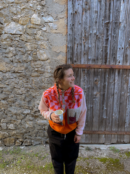 J'ai eu la chance de pouvoir réutiliser des sacs OSPREY en fin de vie pour faire cette collection. Tu retrouveras alors des polaires, des polaires sans manche, des bonnets et des casquettes ! Chaque pièce est unique, sache que les details pourront varier sur celle que tu recevras. C'est géniale de se dire que ces sacs ont déja vécu de belles aventures en montagne et qu'ils vont repartir pour un tour ! Cette fois à tes cotés <3