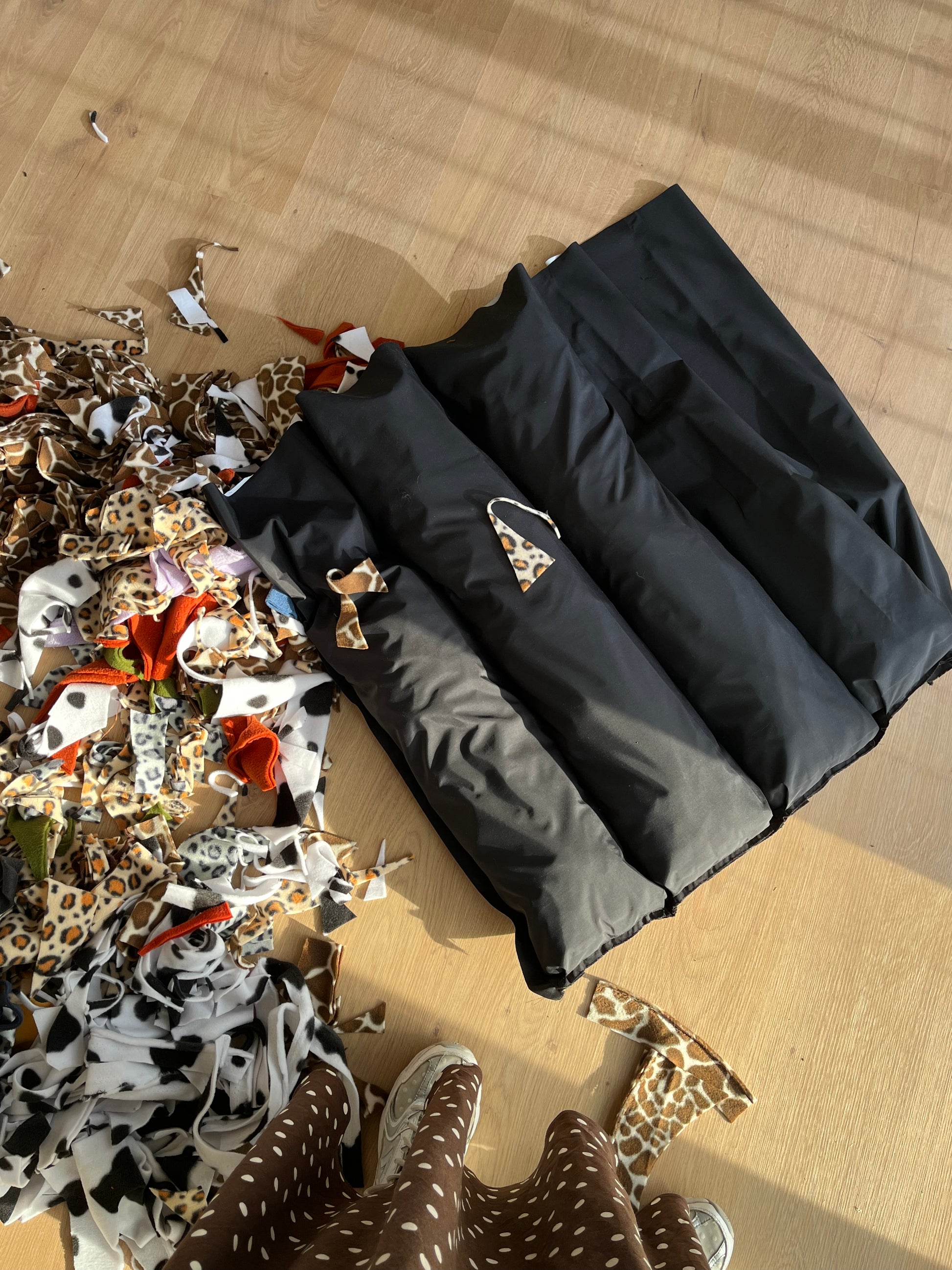 Voici le tuto assez simple pour créer un pouf, le mien fait 70cm x 90cm mais tu pourras adapter facilement à la taille de ton chien :)